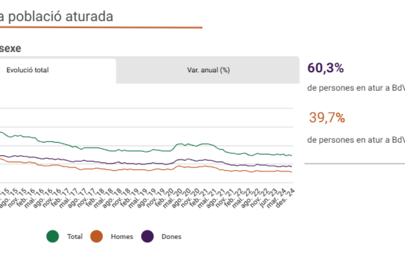L’any 2024 ha mantingut evident la bretxa de gènere, ja que l’evolució de l’atur ha estat positiva per als homes, amb una reducció del 5,5%; però no per a les dones, que ha augmentat mig punt percentual. L'atur de llarga durada continua afectant prop de la meitat de persones sense feina, amb un 49,1%.
