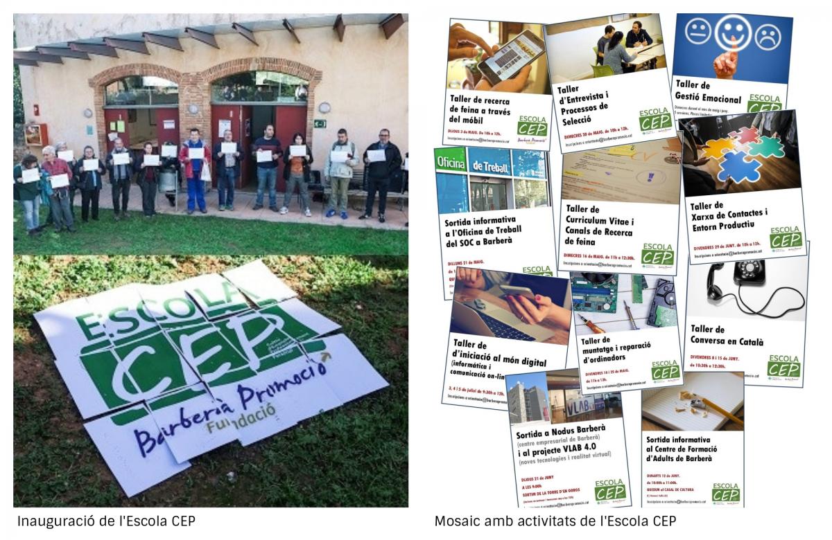 L’Escola CEP és una iniciativa innovadora del Servei d’Orientació Sociolaboral i Dinamització Comunitària de la Fundació Barberà Promoció que ofereix un conjunt d’activitats per la millora de l’ocupabilitat des de 4 àmbits: Horta, Arts i Oficis, Orientació Sociolaboral i Creixem fent Comunitat.