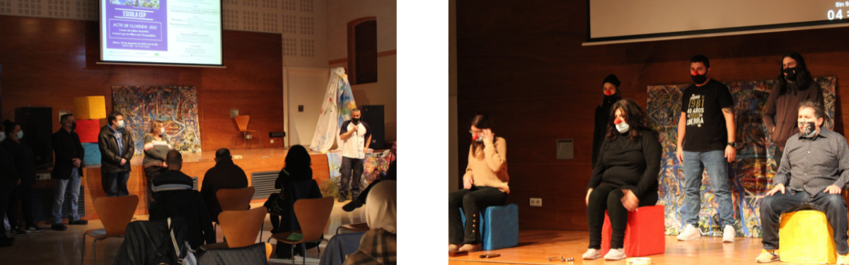 A més, es va reproduir el vídeo “De què vull treballar”, una mostra de treballs realitzats pel grup ADIM, i va tenir lloc una acció teatral del Grup de Teatre “La Interessant”, dissenyada i representada pels membres del taller COM.
