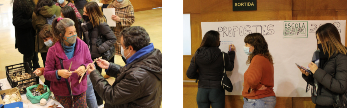 Per finalitzar, es van realitzar uns racons d’activitats perquè els assistents poguessin participar; un taller de decoració amb elements de la natura, un mural de propostes d’activitats per l’Escola CEP el 2022, i un racó per a recollir el certificat de participació dels tallers fets enguany.